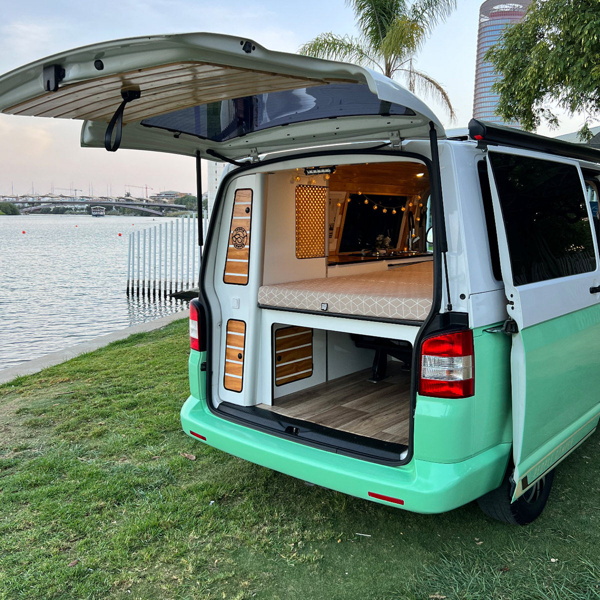 Todas nuestras campers de alquiler están camperizadas por lo que su interior está equipado al estilo de autocaravana. Podrás hacer vida en la furgoneta que elijas.