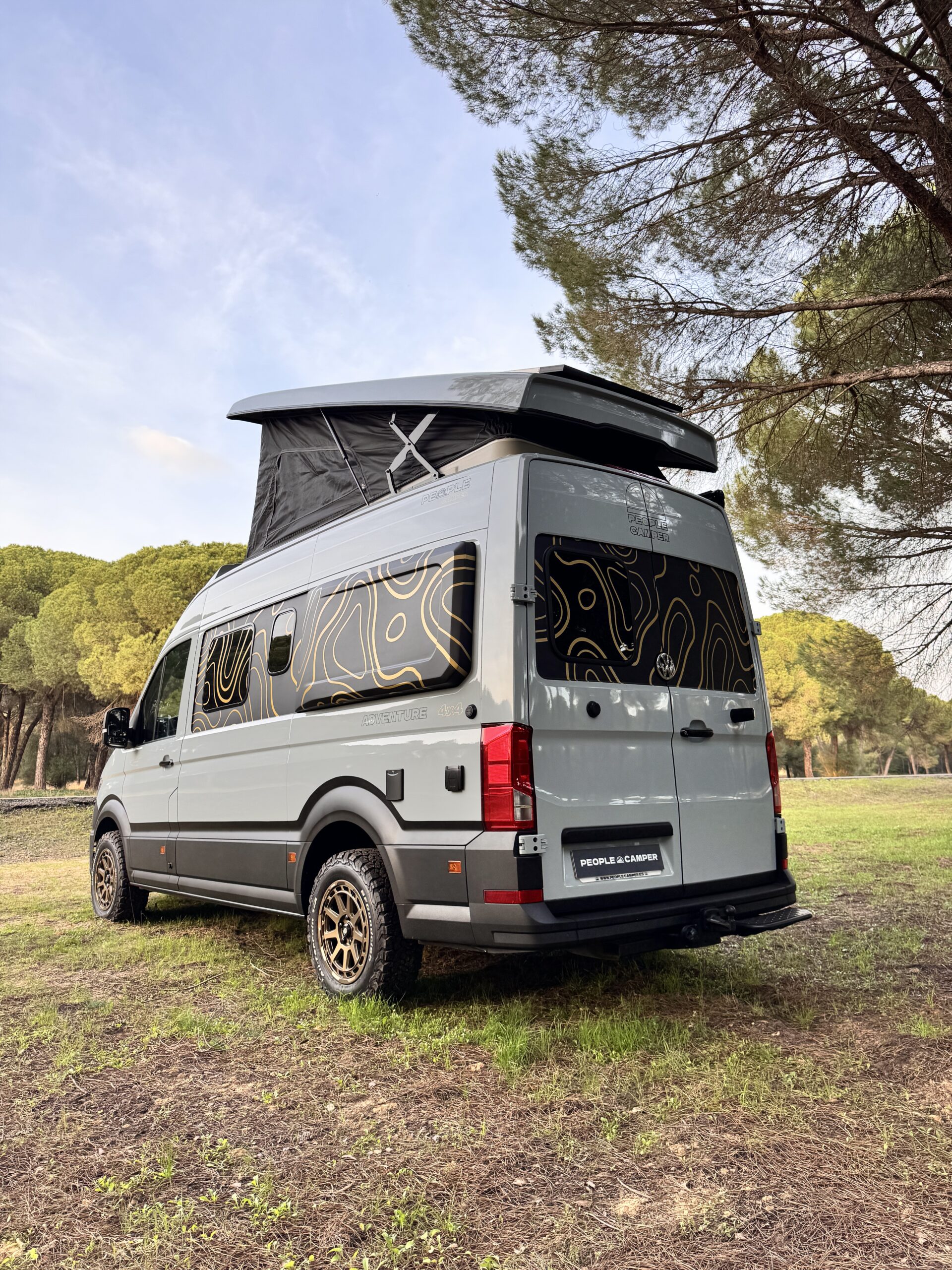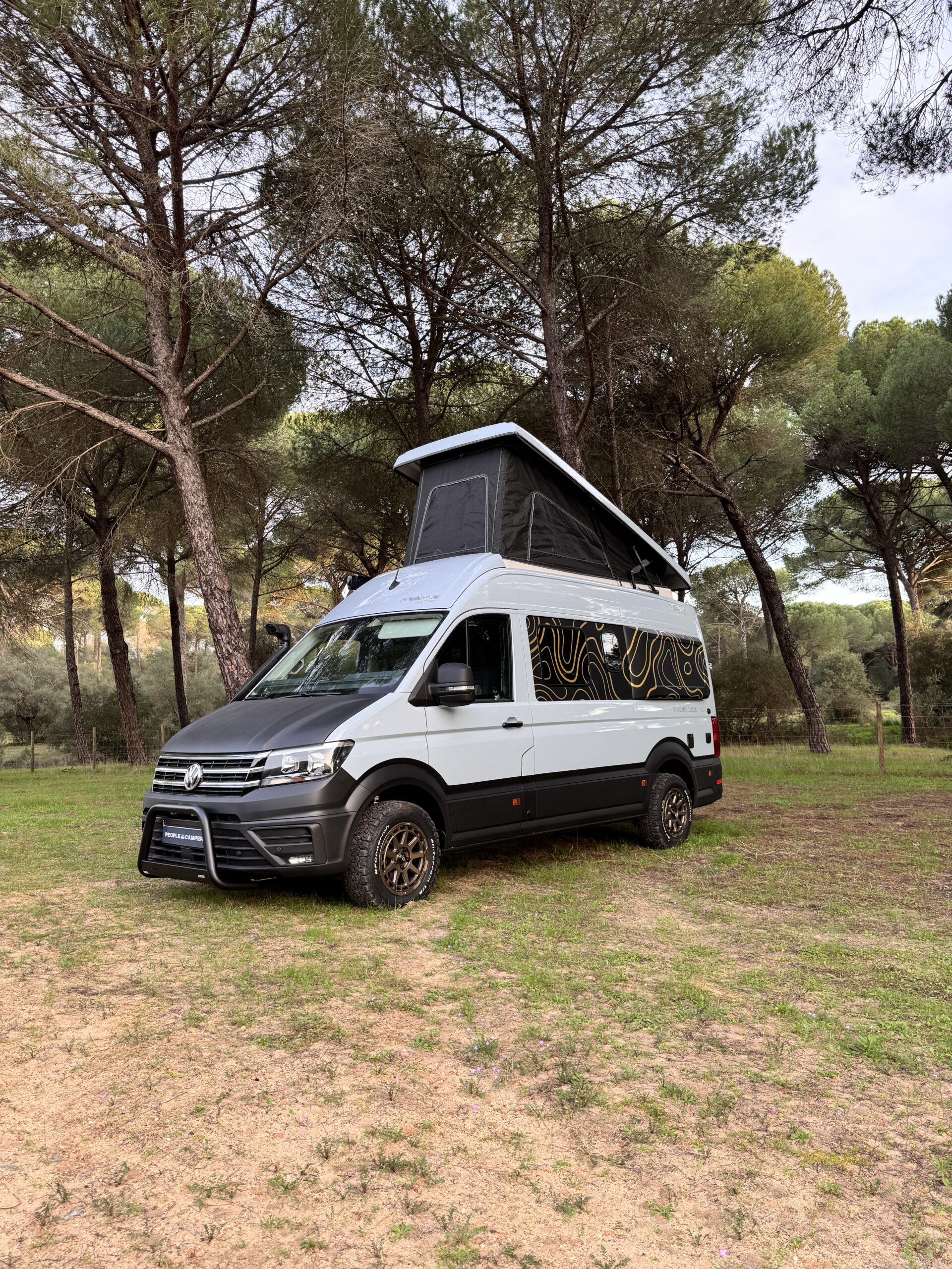 DECORACIÓN EXCLUSIVA PEOPLE CAMPER: Vinilos decorativos, Lunas tintadas y homologadas, Tapicería de asientos terminación R-Line con reposabrazos, Snorkel, Defensa delantera, Llantas de 17” SPARCO con Cubiertas BF Goodrich