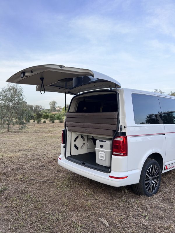 TIPO DE CAMPERIZACIÓN: Personalizada, incluye la instalación de electricidad (totalmente autónoma), Actualización de Software, Calefacción estacionaria, Estructura de mueble cama sin cajones y colchón, Nevera Mobicool, Capacidad para viajar hasta 9 personas.