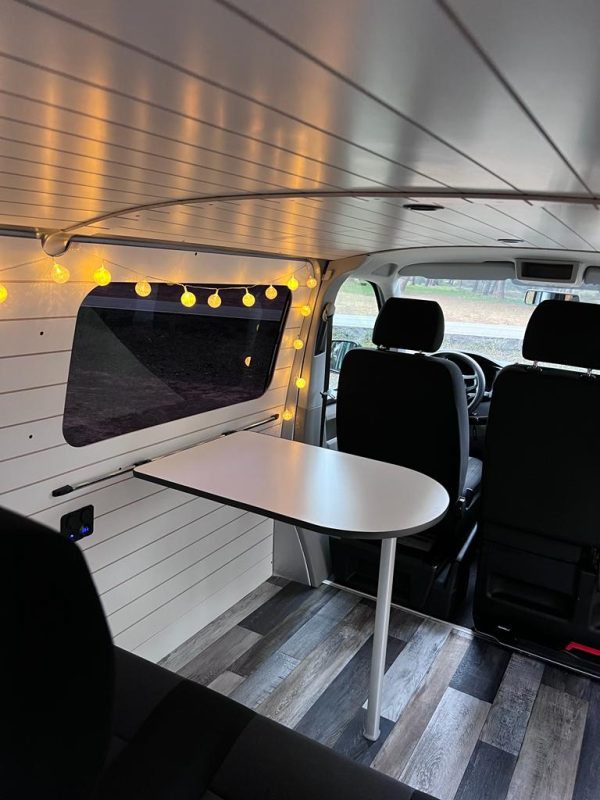 TIPO DE CAMPERIZACIÓN: Standard, incluye la instalación de electricidad (totalmente autónoma), Asiento giratorio copiloto doble, Asiento triple trasero con Isofix, Aislamiento completo, Paneleado, Ducha Portátil, Actualización de Software, Estructura de mueble cama sin cajones y colchón, Nevera portátil, Mesa interior de madera empotrada, Capacidad para viajar hasta 6 personas.