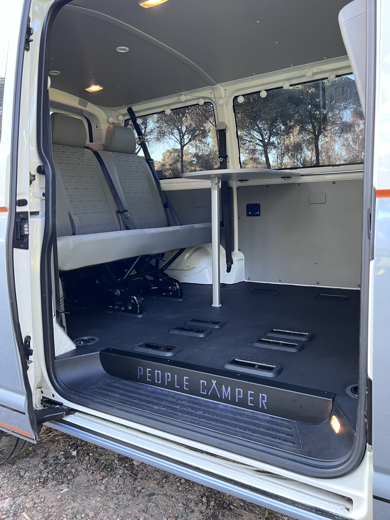 TIPO DE CAMPERIZACIÓN: Personalizada, incluye la instalación de electricidad (totalmente autónoma), Calefacción estacionaria, Aislamiento completo, Toldo F35 PRO, nevera, base giratoria doble, Actualización de Software, Estructura de mueble cama con cajones y colchón, Capacidad para viajar hasta 6 personas, gran capacidad de almacenaje